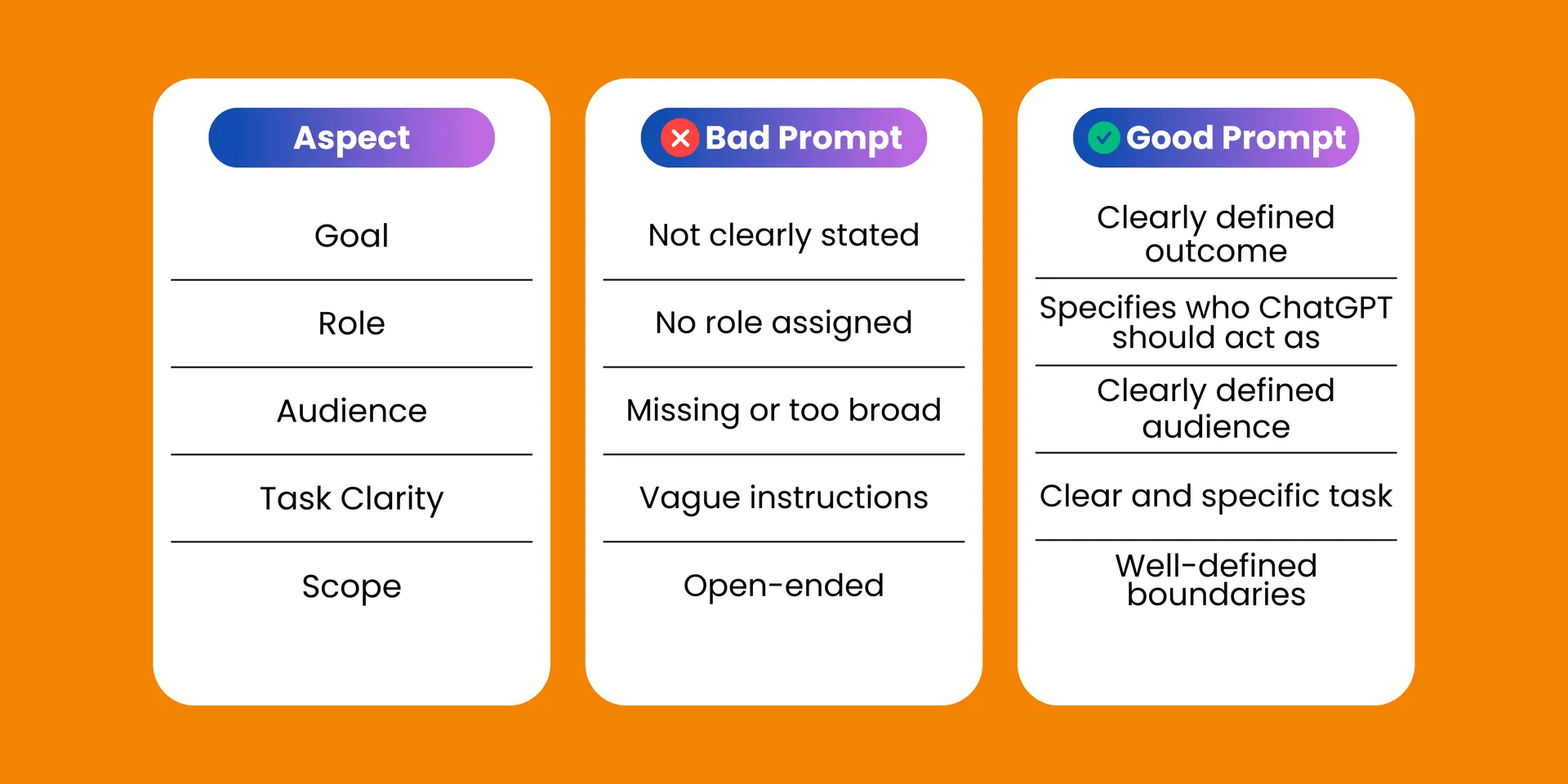 A good prompt does something simple. It tells ChatGPT who to be, what to do, who it’s for, and what the final output should look like. When you do that, the responses stop sounding like filler and start looking usable.