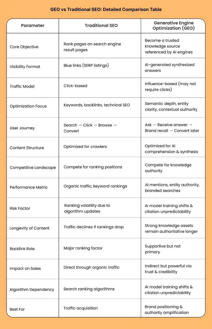 GEO vs Traditional SEO: Detailed Comparison Table